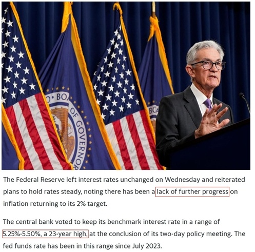 在本月初結束最新一次議息會議后,美聯(lián)儲決定繼續(xù)將聯(lián)邦基金利率維持在5.25%-5.0%的目標區(qū)間,理由是在實現(xiàn)通脹目標方面“缺乏進一步進展”。