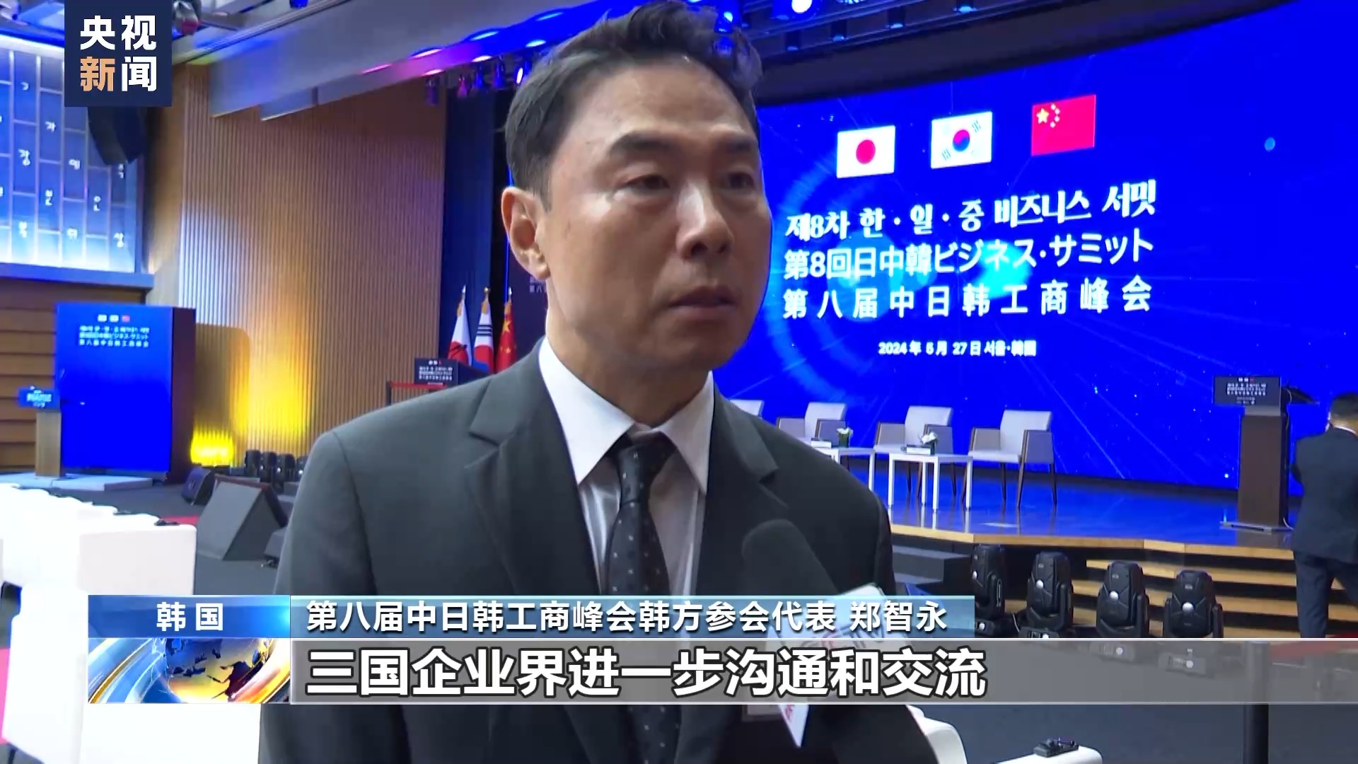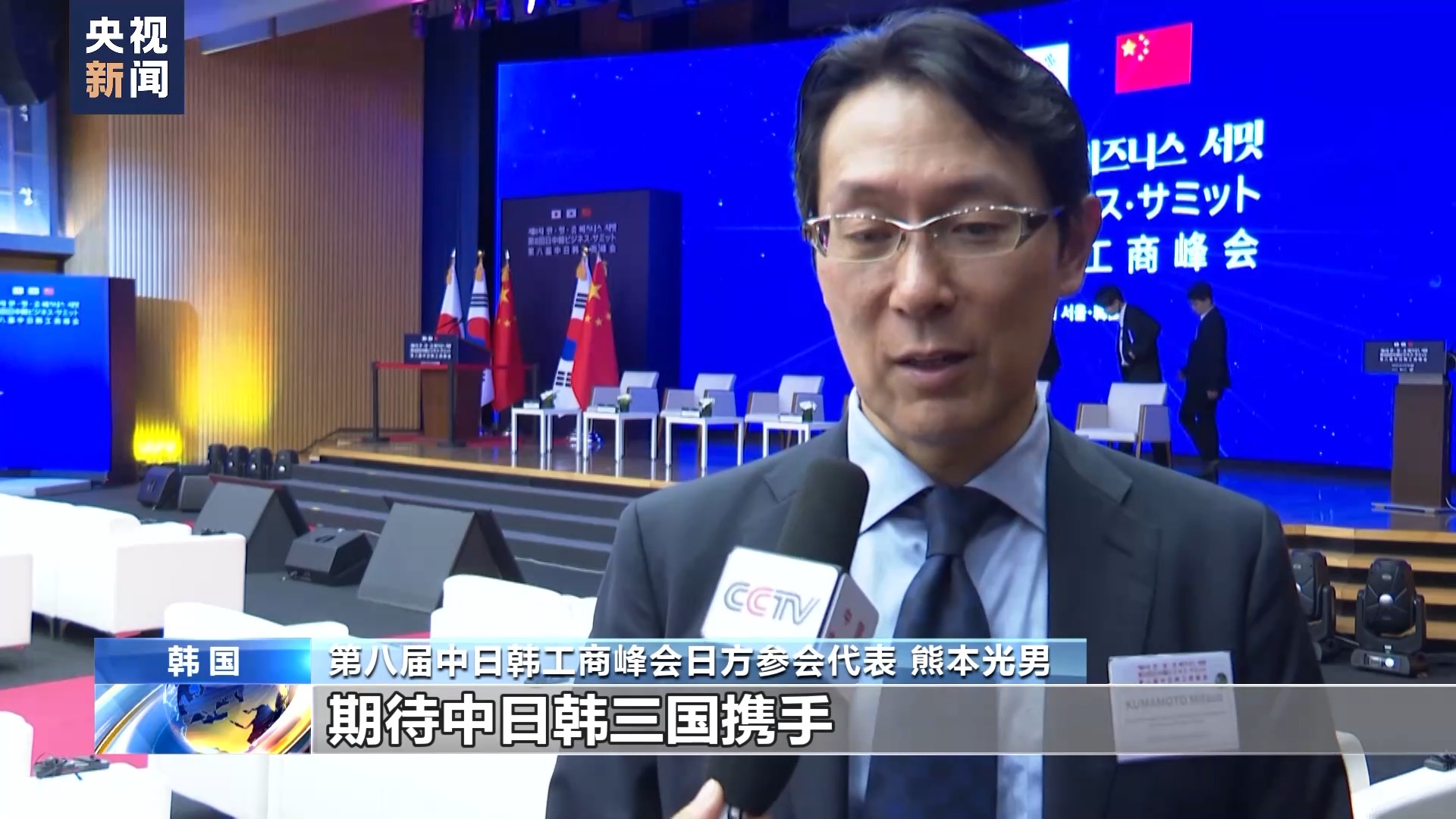 第八屆中日韓工商峰會韓方參會代表 鄭智永:通過中日韓工商峰會,三國企業(yè)界進一步溝通和交流,期待中日韓三國經濟可以持續(xù)發(fā)展,也期待中日韓三國加深友好關系。