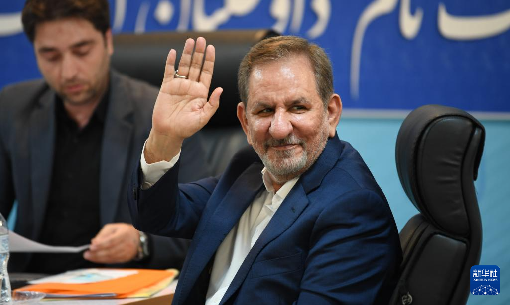 6月3日,伊朗前第一副總統(tǒng)埃沙格·賈漢吉里在德黑蘭參加伊朗總統(tǒng)選舉候選人登記。?新華社記者 沙達(dá)提 攝