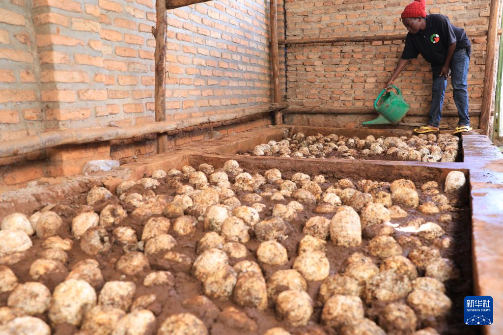 在盧旺達首都基加利,42歲的萊昂尼達斯·穆希米伊馬納經(jīng)營著當?shù)匾?guī)模最大的食用菌培育工坊。他曾前往中國參加菌草技術(shù)培訓(xùn),回國后成立了這家工坊。