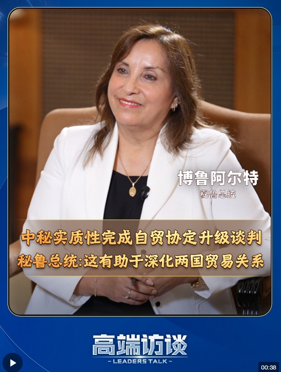 6月28日,中國與秘魯宣布實質(zhì)性完成自貿(mào)協(xié)定升級談判。秘魯總統(tǒng)博魯阿爾特在接受總臺《高端訪談》專訪時表示,中國是秘魯?shù)谝淮筚Q(mào)易伙伴,兩國新簽署的諒解備忘錄,將有助于深化兩國貿(mào)易關(guān)系,進一步加強雙邊關(guān)系。