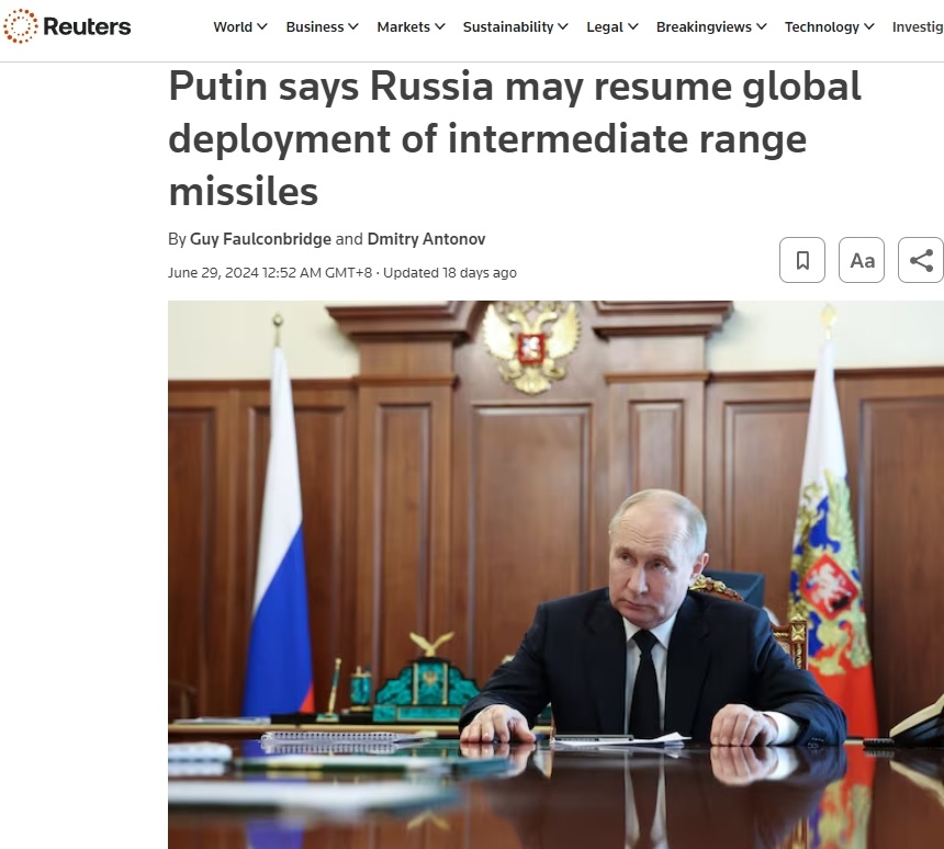 俄方不止一次發(fā)布消息說,美國的陸基中導系統已經出現在歐洲的軍事訓練中。俄總統普京上月底曾警告,作為對美國敵對行動的回應,莫斯科可能會恢復陸基中導的生產和全球部署。