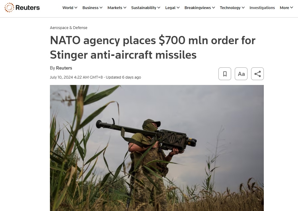 本月早些時候,北約宣布已經以多個成員國的名義訂購了價值近7億美元的“毒刺”肩扛式單兵防空導彈。這款導彈也是雷神制造。