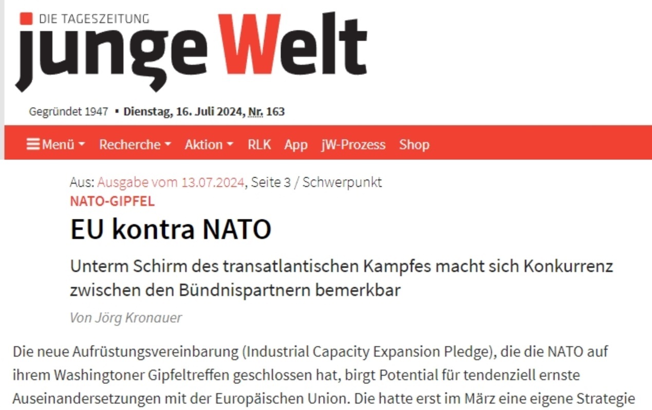 諷刺的是,為了借這場危機重振歐洲軍工產業(yè)、擺脫對美依賴,歐盟委員會今年3月剛剛公布了歐盟首份《歐洲國防工業(yè)戰(zhàn)略》。但有德國媒體警告,北約華盛頓峰會上達成的《工業(yè)能力擴張承諾協議》或將使歐盟與北約爆發(fā)嚴重爭端。