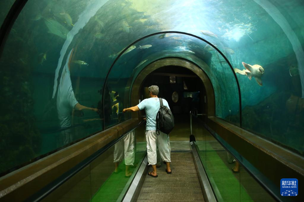 7月23日,游客參觀泰國普吉海洋生物中心內設的水族館。新華社記者 孫瑋彤 攝