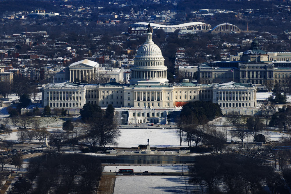 這是1月17日在美國首都華盛頓拍攝的雪后的國會大廈。 新華社發(fā)(亞倫 攝)