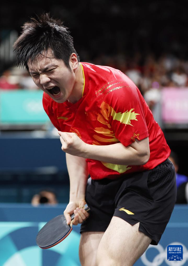 8月9日,王楚欽在獲勝后慶祝。新華社記者 王東震 攝