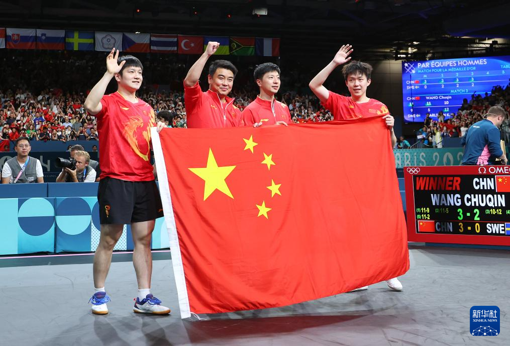 當(dāng)日,在巴黎奧運(yùn)會(huì)乒乓球男團(tuán)金牌賽中,中國隊(duì)?wèi)?zhàn)勝瑞典隊(duì),獲得冠軍。