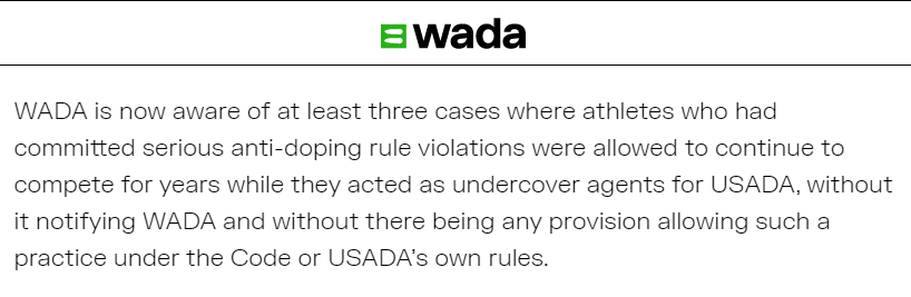 世界反興奮劑機(jī)構(gòu)前幾天披露,他們發(fā)現(xiàn)美國(guó)常年包庇至少3名嚴(yán)重違規(guī)“嗑藥”的運(yùn)動(dòng)員,理由居然是把這些人發(fā)展成了“線人”。這些“線人”整個(gè)職業(yè)生涯都在正常參賽和拿獎(jiǎng),自己就是“奉命作弊”,還指望他們抓作弊嗎?