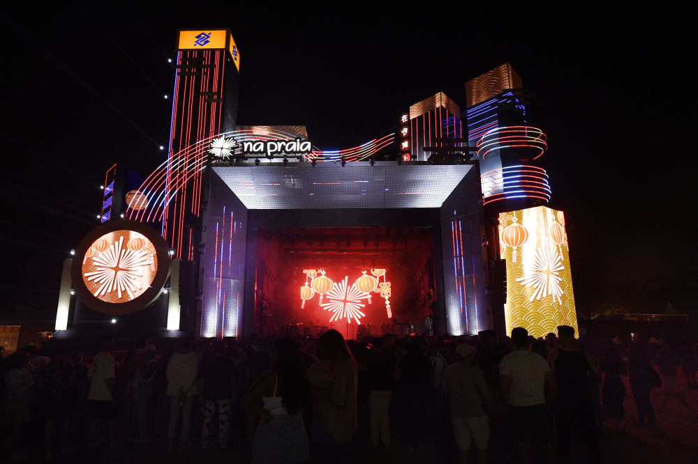 ↑8月17日,在巴西首都巴西利亞,來(lái)自中國(guó)和巴西的音樂(lè)家在沙灘藝術(shù)節(jié)中國(guó)日活動(dòng)上表演合奏。新華社發(fā)(盧西奧·塔沃拉攝)
