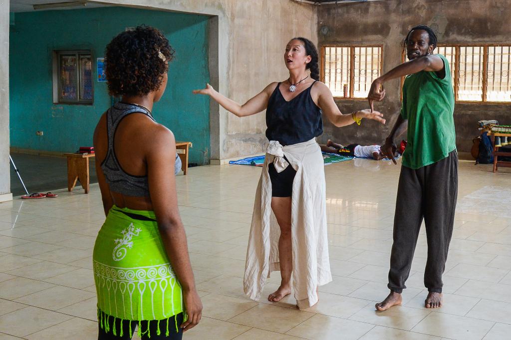 為了讓沒有任何專業(yè)基礎的喀麥隆學生們理解現(xiàn)代舞,娜爾斯和蔣可鈺還想到用中國太極和源于印度的瑜伽,向?qū)W員們講解太極圓弧運動和道家哲學思想,讓學生們領會中國太極和東方文化的思想內(nèi)涵,催化了中非古老文化的融合。