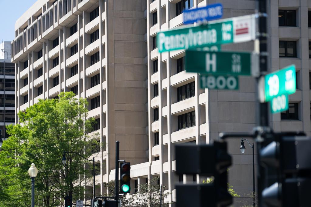 這是4月16日在美國華盛頓拍攝的國際貨幣基金組織總部。新華社記者劉杰攝
