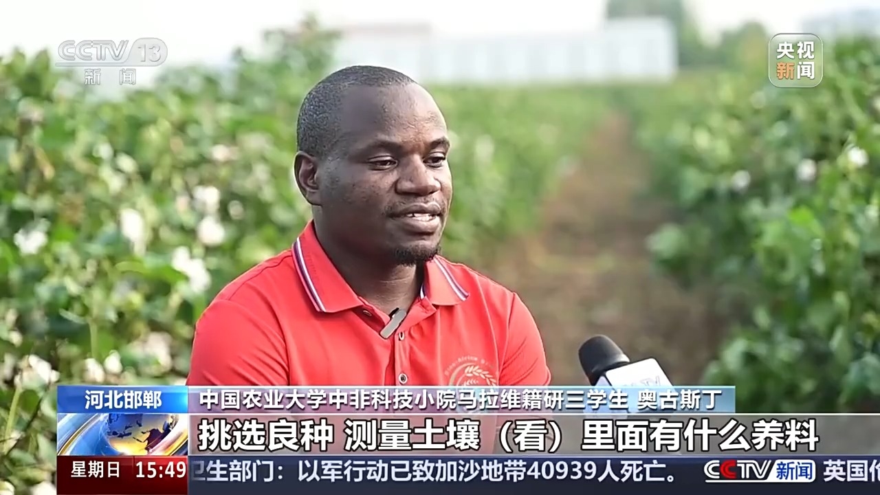 中國(guó)農(nóng)業(yè)大學(xué)中非科技小院馬拉維籍研一學(xué)生 馬達(dá):我們即將迎來(lái)玉米豐收。我真的從中國(guó)學(xué)到了很多東西,馬拉維主要靠農(nóng)業(yè),80%多都是農(nóng)業(yè)人口。只要農(nóng)業(yè)有發(fā)展,國(guó)家就會(huì)發(fā)展。