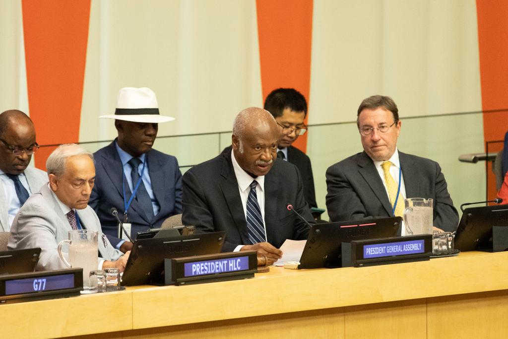 9月12日,在位于紐約的聯(lián)合國(guó)總部,第79屆聯(lián)合國(guó)大會(huì)主席菲勒蒙·揚(yáng)(前排中)在聯(lián)合國(guó)南南合作日高級(jí)別討論會(huì)上致辭。新華社記者 謝鍔 攝