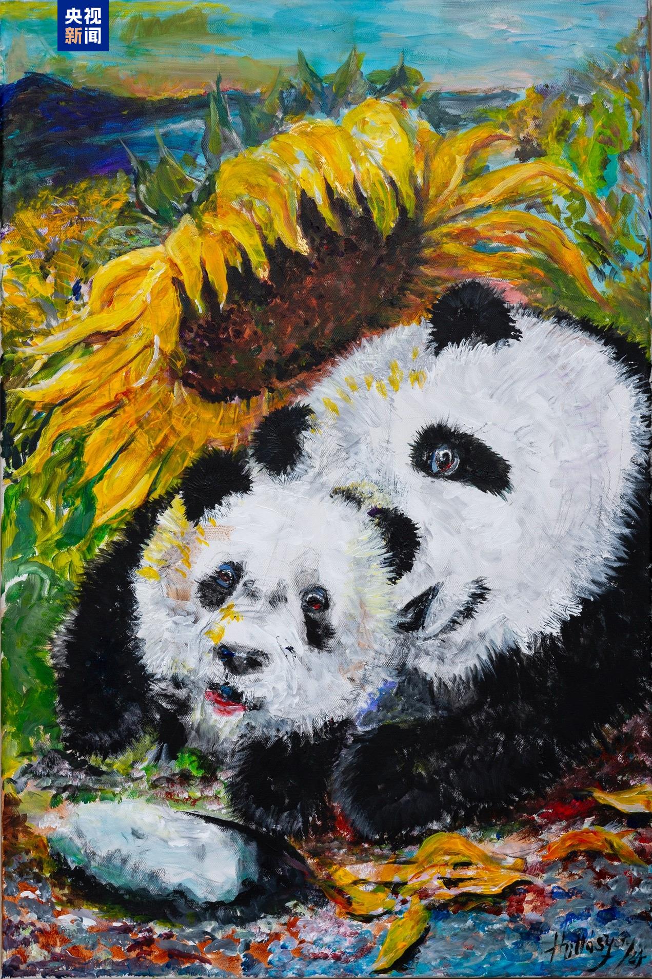 受到旅美大熊貓“云川”和“鑫寶”的啟發(fā),美國著名雕塑家、畫家尤里·霍洛西為“云中錦書”創(chuàng)作《沐浴陽光的和諧瞬間》。
