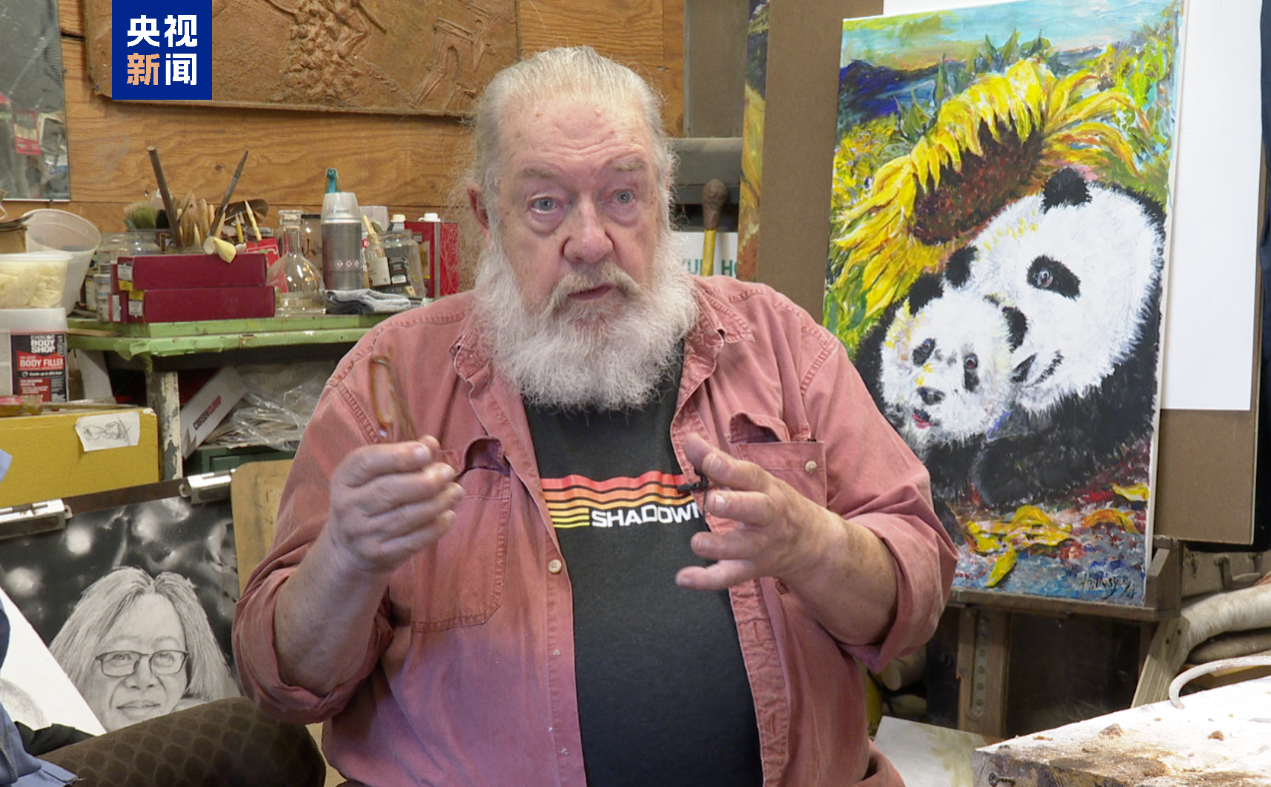 向日葵既是霍洛西的創(chuàng)作主題之一,也象征著加州的植被和自然景觀,霍洛西把加州向日葵和中國大熊貓結(jié)合在一起,比喻旅美大熊貓受到美國人民的喜愛和呵護,在圣迭戈的新家茁壯成長?;袈逦髡J(rèn)為,人與人交流的關(guān)鍵是保持開放的心態(tài),在傾聽的過程中學(xué)習(xí)與對話。