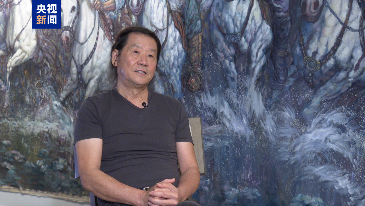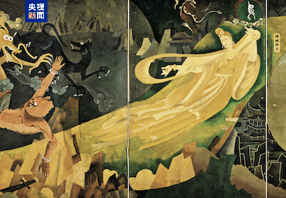 中國畫家楊曉陽的作品《遠(yuǎn)古足音》描繪了嫦娥奔月,寄托了中華民族千年飛天夢,而中國航天事業(yè)的發(fā)展正將這一夢想化為現(xiàn)實,書寫新的傳奇。