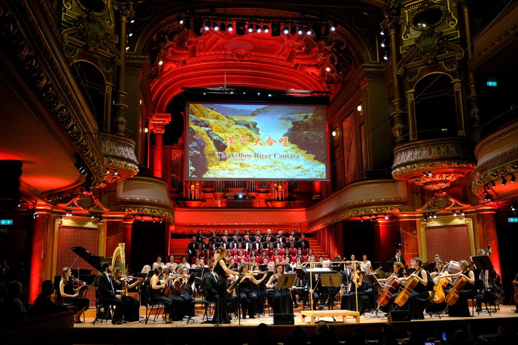 中華人民共和國(guó)成立75周年之際,由八個(gè)樂(lè)章組成的《黃河大合唱》在瑞士日內(nèi)瓦維多利亞音樂(lè)廳唱響。全曲演出時(shí)長(zhǎng)40多分鐘,現(xiàn)場(chǎng)觀眾對(duì)每一樂(lè)章都報(bào)以熱烈掌聲。瑞士記者俱樂(lè)部前主席居伊·梅唐說(shuō),這場(chǎng)令人震撼的演出讓他深深感受到中國(guó)人民自強(qiáng)不息的精神。瑞士觀眾卡琳·勒雷舍說(shuō):“《黃河大合唱》唱的是愛(ài)國(guó)情懷。中國(guó)人民熱愛(ài)自己的國(guó)家,我們也如此,我深受感動(dòng)。祝福中國(guó)!”