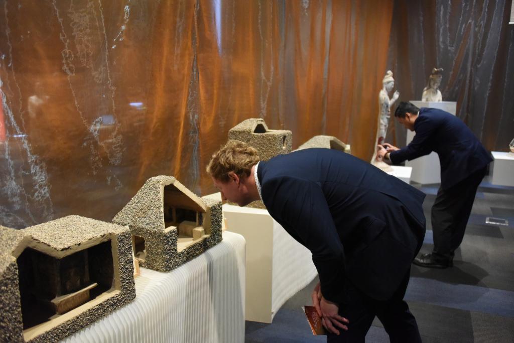 新中友協(xié)奧克蘭分會(huì)副主席利奧·德·格拉夫在VR展臺(tái)體驗(yàn)數(shù)字化還原的莫高窟第285窟后,表達(dá)了自己“要去一次敦煌”的愿望。新西蘭國(guó)會(huì)議員珍妮·薩萊薩穿過(guò)莫高窟第3窟的復(fù)制洞窟,感嘆“真切體會(huì)到美與文化之間的相互關(guān)聯(lián)”。