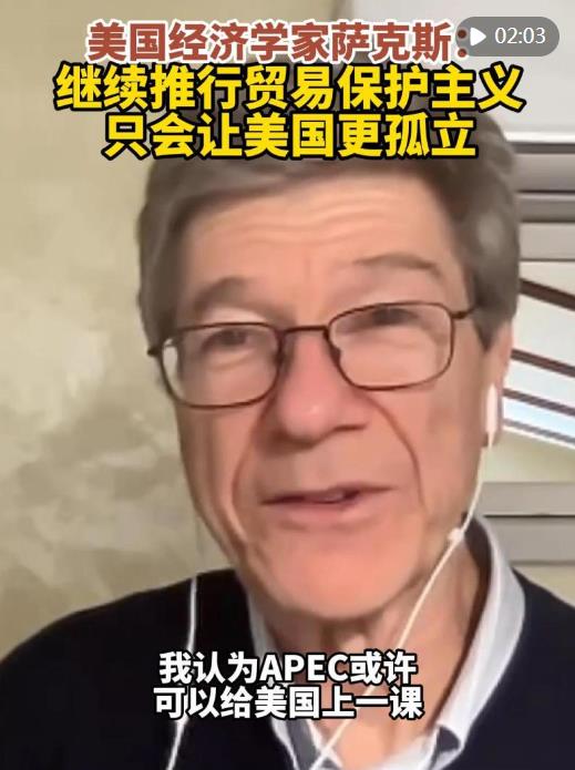薩克斯表示,美國(guó)應(yīng)停止破壞性的貿(mào)易政策。美國(guó)慫恿其他國(guó)家停止與中國(guó)經(jīng)貿(mào)往來,但很多國(guó)家并不跟風(fēng)。繼續(xù)推行貿(mào)易保護(hù)主義只會(huì)讓美國(guó)更孤立。(記者:鄭開君、熊茂伶、胡友松;視頻:鄭開君、刁慧琳)