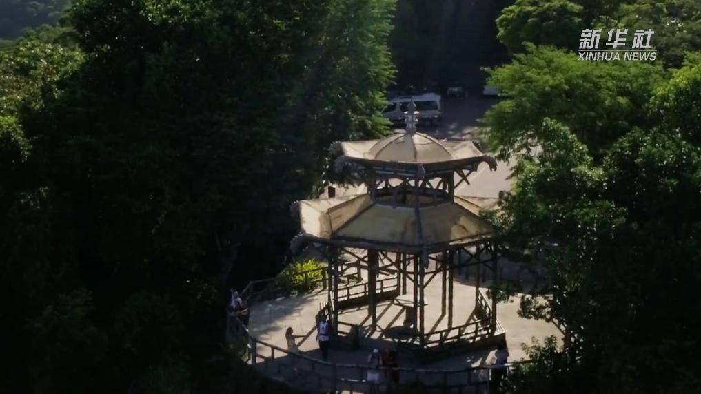 在科爾科瓦多山上的蒂茹卡國家公園里,有一座玲瓏別致的中式?jīng)鐾ぃ私秋w檐上雕刻著色彩艷麗的飛龍。這座涼亭是里約地方政府為表彰華工在巴西用中國茶籽培育茶樹的功績而修建。現(xiàn)在,中國亭已成為中巴兩國人民友誼的象征。