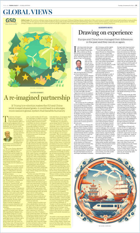 從長遠(yuǎn)來看,這一戰(zhàn)略有利于整個(gè)國際社會——包括美國在內(nèi)。如今,全球領(lǐng)導(dǎo)地位不可能來自單邊主義的幻想——它要求拿出切實(shí)行動,建設(shè)性地推動包容、公正的全球治理體系發(fā)展。中歐伙伴關(guān)系應(yīng)重新設(shè)計(jì),讓雙方在尊重彼此優(yōu)先事項(xiàng)的同時(shí),朝著共同的目標(biāo)努力,這將為全球合作應(yīng)對世界上最緊迫挑戰(zhàn)樹立典范。如果特朗普的再次上臺能夠促使歐盟采取這種做法,那倒也未嘗不是件好事,因?yàn)樗罱K可能會催生一個(gè)更強(qiáng)大、更有韌性的全球體系——一個(gè)平衡多個(gè)大國利益、造福全體人類的體系。