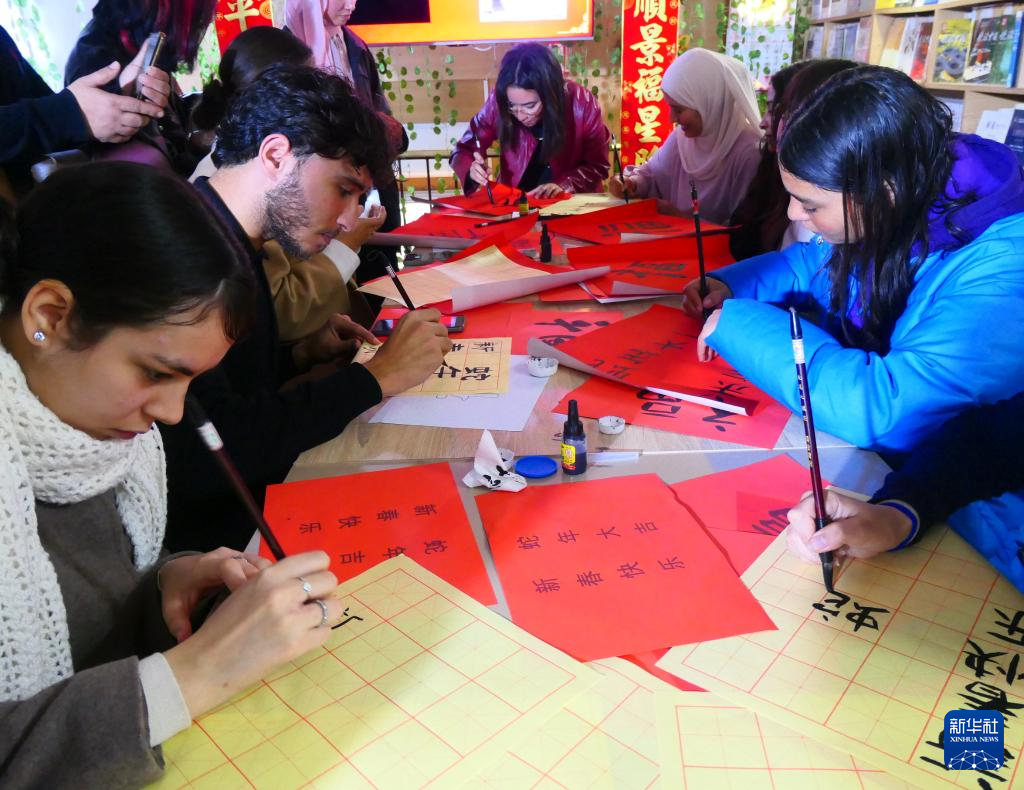 春節(jié)期間,突尼斯東方知識(shí)書(shū)店舉行了春節(jié)相關(guān)文化活動(dòng),參與者通過(guò)觀看視頻短片、有獎(jiǎng)問(wèn)答、寫(xiě)福字等活動(dòng)了解中國(guó)春節(jié)常識(shí)并親身體會(huì)中國(guó)年味。突尼斯迦太基大學(xué)高等語(yǔ)言學(xué)院中文專業(yè)學(xué)生興致勃勃地演唱了《月亮代表我的心》等中文歌曲。