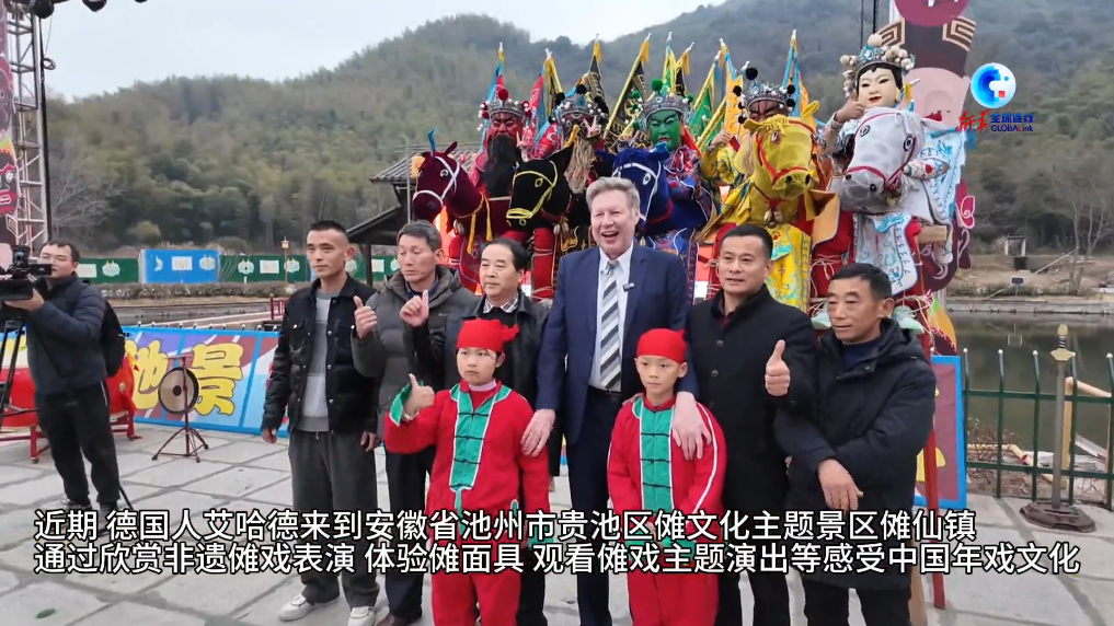 近期,德國人艾哈德來到安徽省池州市貴池區(qū)儺文化主題景區(qū)儺仙鎮(zhèn),通過欣賞非遺儺戲表演、體驗儺面具、觀看儺戲主題演出等感受中國年戲文化。作為第一批國家級非物質(zhì)文化遺產(chǎn)代表性項目的池州儺戲,是安徽省古老稀有的劇種之一,有“戲曲活化石”之稱。
