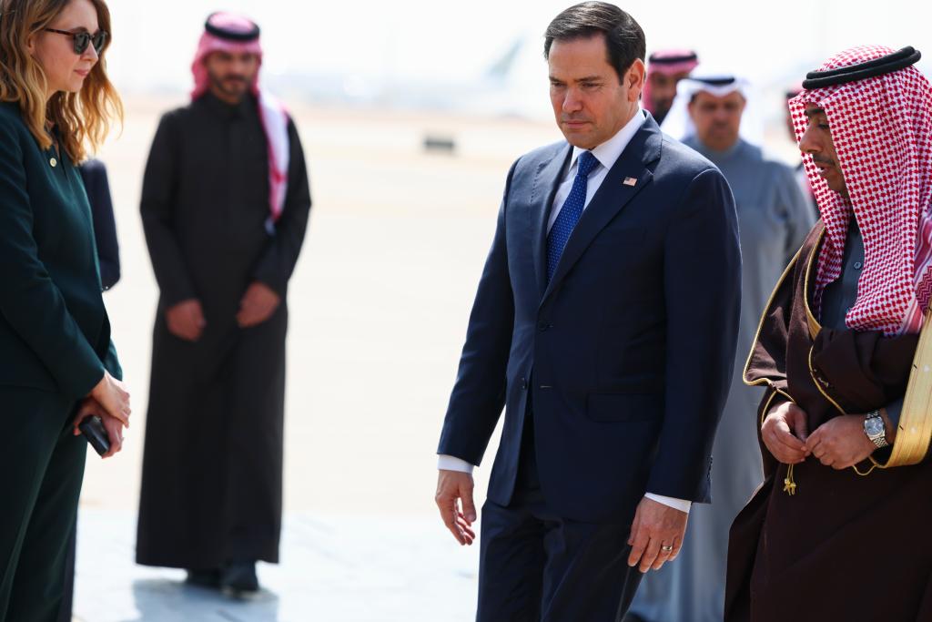 2月17日,美國國務(wù)卿魯比奧抵達(dá)沙特利雅得。新華社/美聯(lián)