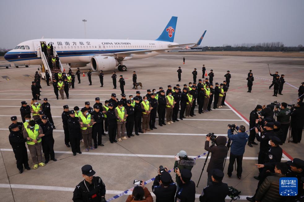2月20日,隨著中國民航包機(jī)降落在江蘇南京祿口國際機(jī)場,緬甸妙瓦底地區(qū)的200名中國籍涉詐犯罪嫌疑人,經(jīng)泰國被我公安機(jī)關(guān)押解回國。此次行動(dòng)是中緬泰開展執(zhí)法合作取得的標(biāo)志性重大戰(zhàn)果,彰顯三國聯(lián)合打擊電信網(wǎng)絡(luò)詐騙等跨國犯罪維護(hù)地區(qū)安全穩(wěn)定的堅(jiān)定決心。新華社記者 殷剛 攝