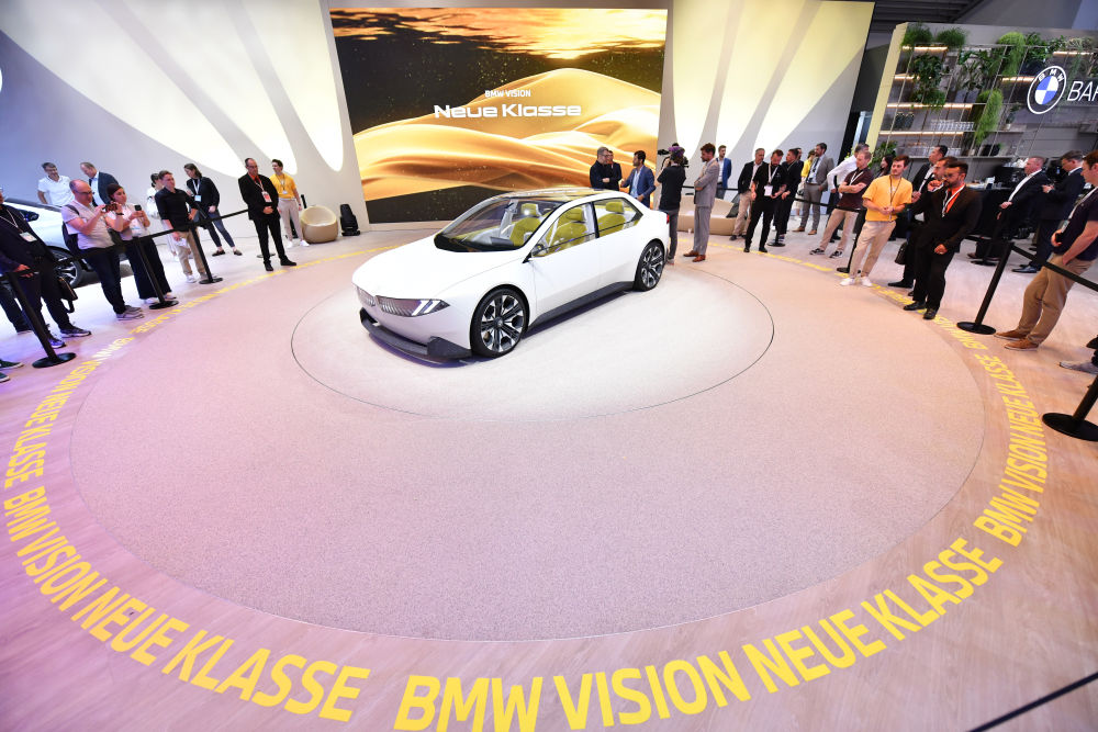 2023年9月5日,在德國(guó)慕尼黑,人們?cè)诘聡?guó)國(guó)際汽車及智慧出行博覽會(huì)的寶馬展區(qū)參觀。新華社記者任鵬飛攝