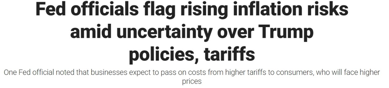 美聯(lián)儲日前公布的1月貨幣政策會議紀(jì)要顯示,因擔(dān)心特朗普政府的關(guān)稅政策可能成為推高通脹的一大因素,美聯(lián)儲官員一致同意維持現(xiàn)有利率不變。