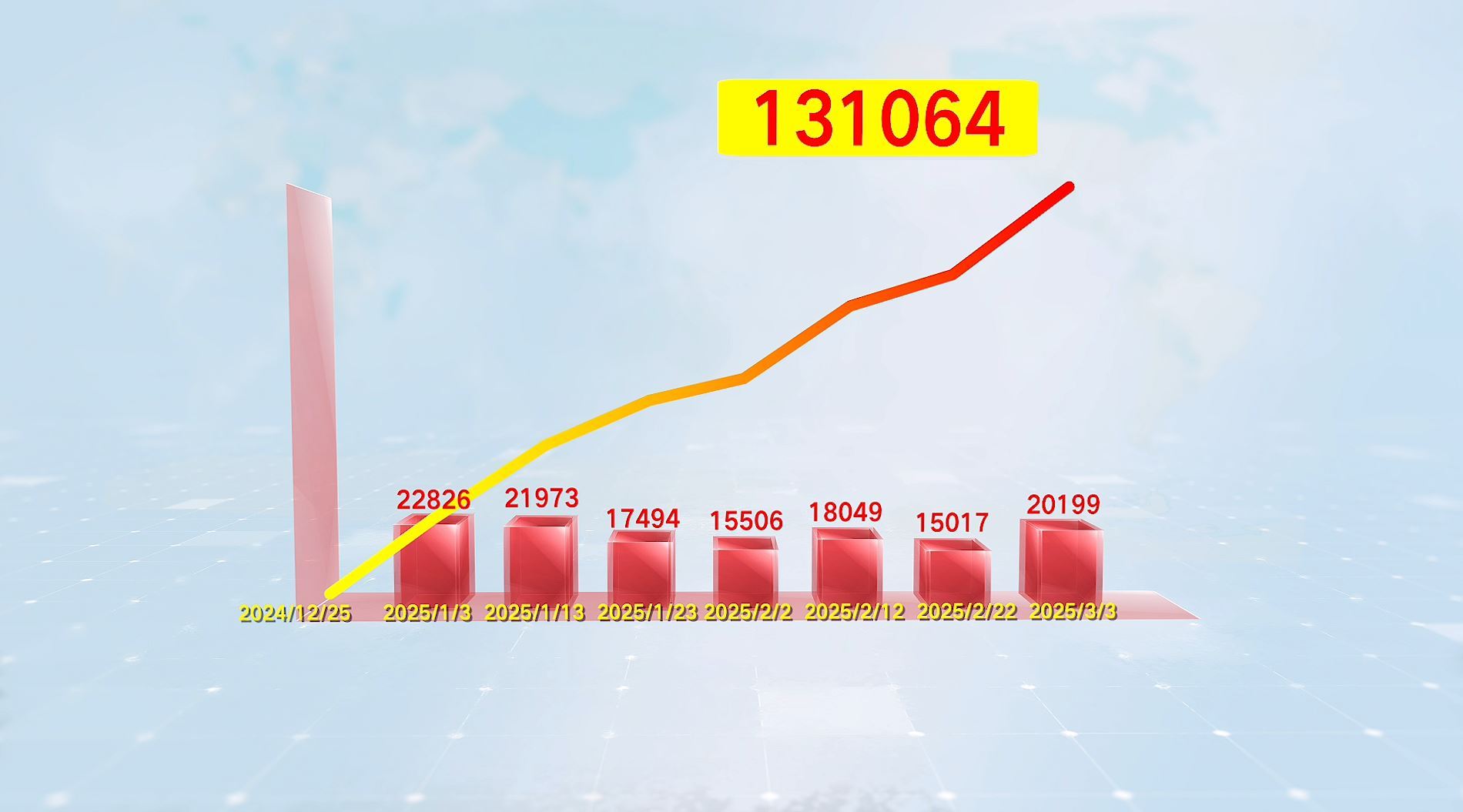 從去年12月25日全國兩會召開時間確定,到今年3月3日這個時間段,在對1000多家海外媒體的報道、200多個海外智庫的研究文章、5個海外社交媒體平臺的貼文以及50多個播客內(nèi)容進行大數(shù)據(jù)追蹤后,我們發(fā)現(xiàn),這一統(tǒng)計區(qū)間內(nèi)關(guān)注兩會的報道和文章總數(shù)達到了131064篇。