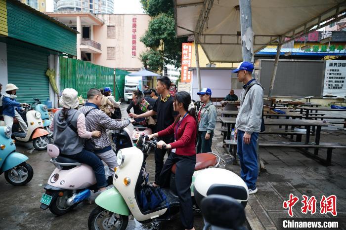 3月16日,云南省紅河州河口縣街頭,數(shù)位越南游客騎著租來的電動(dòng)車游玩。中新社記者 劉冉陽 攝