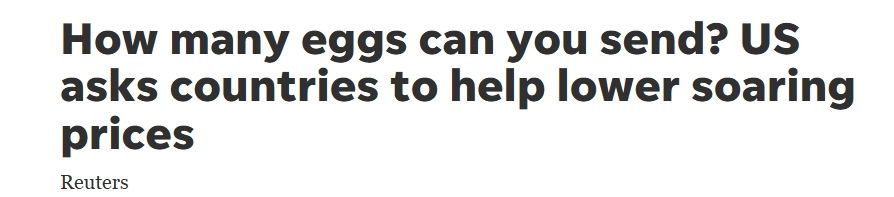 雞蛋讓美國(guó)總統(tǒng)特朗普傷腦筋。路透社說(shuō),特朗普先前承諾1月20日上任首日就要讓美國(guó)蛋價(jià)降下來(lái),但執(zhí)政滿(mǎn)一個(gè)月時(shí),美國(guó)蛋價(jià)較去年同期上漲59%。