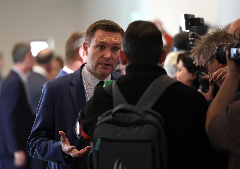 19日上午全會議程結(jié)束后,七位候選人先后來到會場外的混合采訪區(qū),面對來自全球近百名記者的“長槍短炮”。