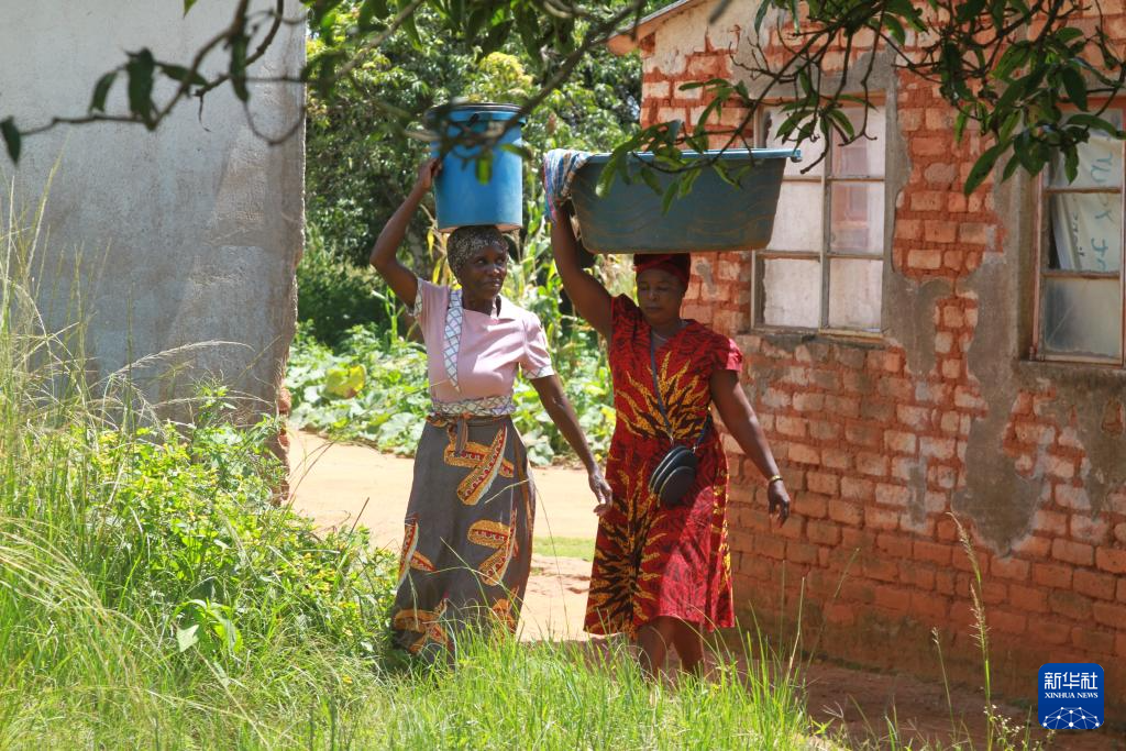 3月20日,兩名女子頭頂裝水的容器走在津巴布韋東馬紹納蘭省。新華社發(fā)(塔法拉·穆瓜拉攝)