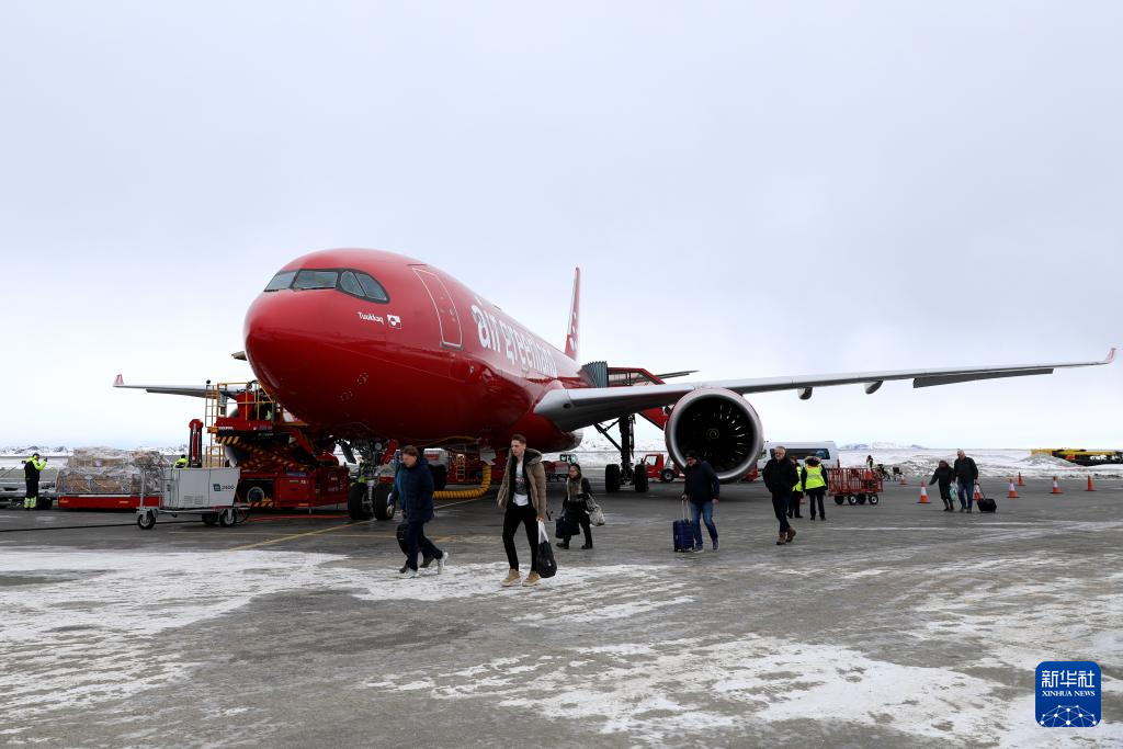 3月18日,人們乘坐飛機(jī)抵達(dá)丹麥自治領(lǐng)地格陵蘭島首府努克。新華社記者 趙丁喆 攝