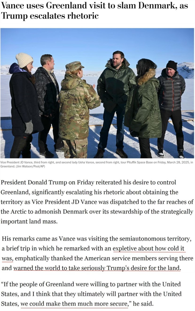 事實上,萬斯一行此次對格陵蘭島的訪問相當(dāng)不受歡迎。
