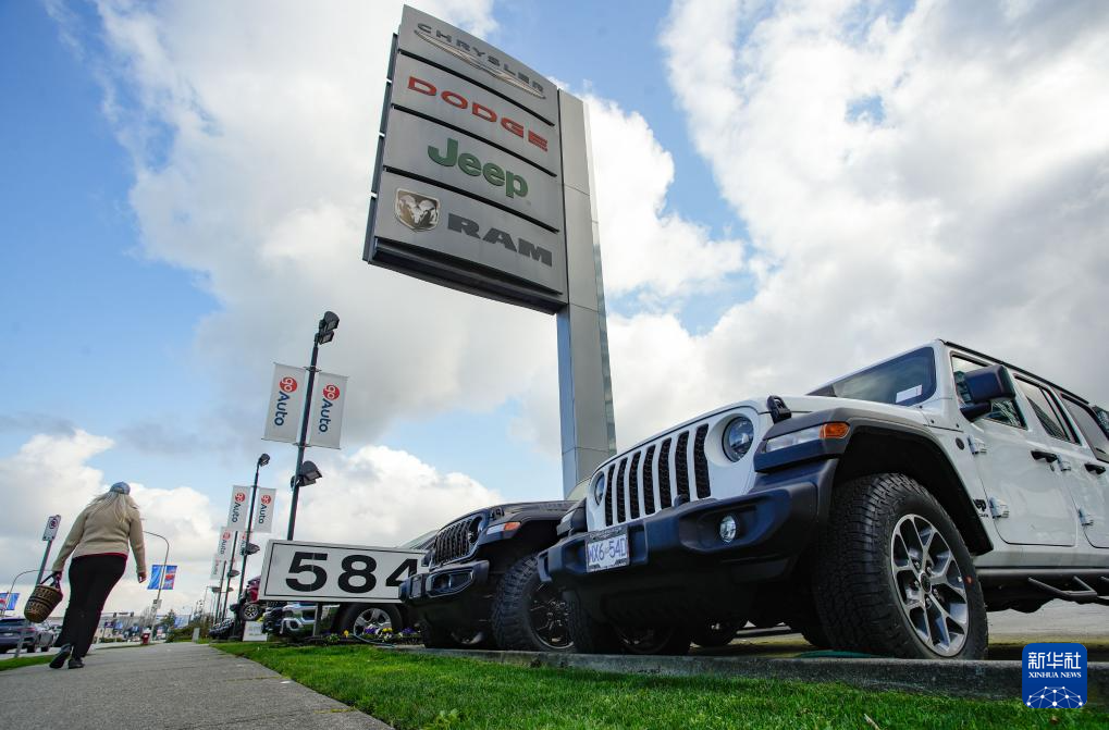 4月3日,車輛陳列在加拿大溫哥華的汽車經(jīng)銷商店面外。新華社發(fā)(梁森攝)
