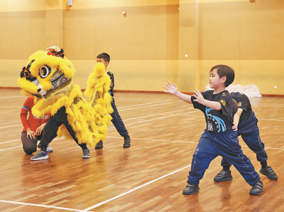馬來(lái)西亞雪蘭莪州培才二校的學(xué)生在練習(xí)舞獅?! ”緢?bào)記者 楊 一攝