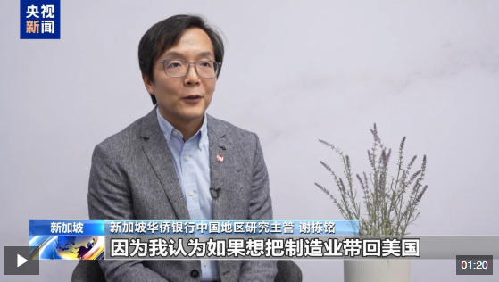 新加坡華僑銀行中國(guó)地區(qū)研究主管 謝棟銘:即使新加坡對(duì)美不存在貿(mào)易順差,也沒(méi)有對(duì)美國(guó)施加關(guān)稅,還是被征收10%的關(guān)稅。