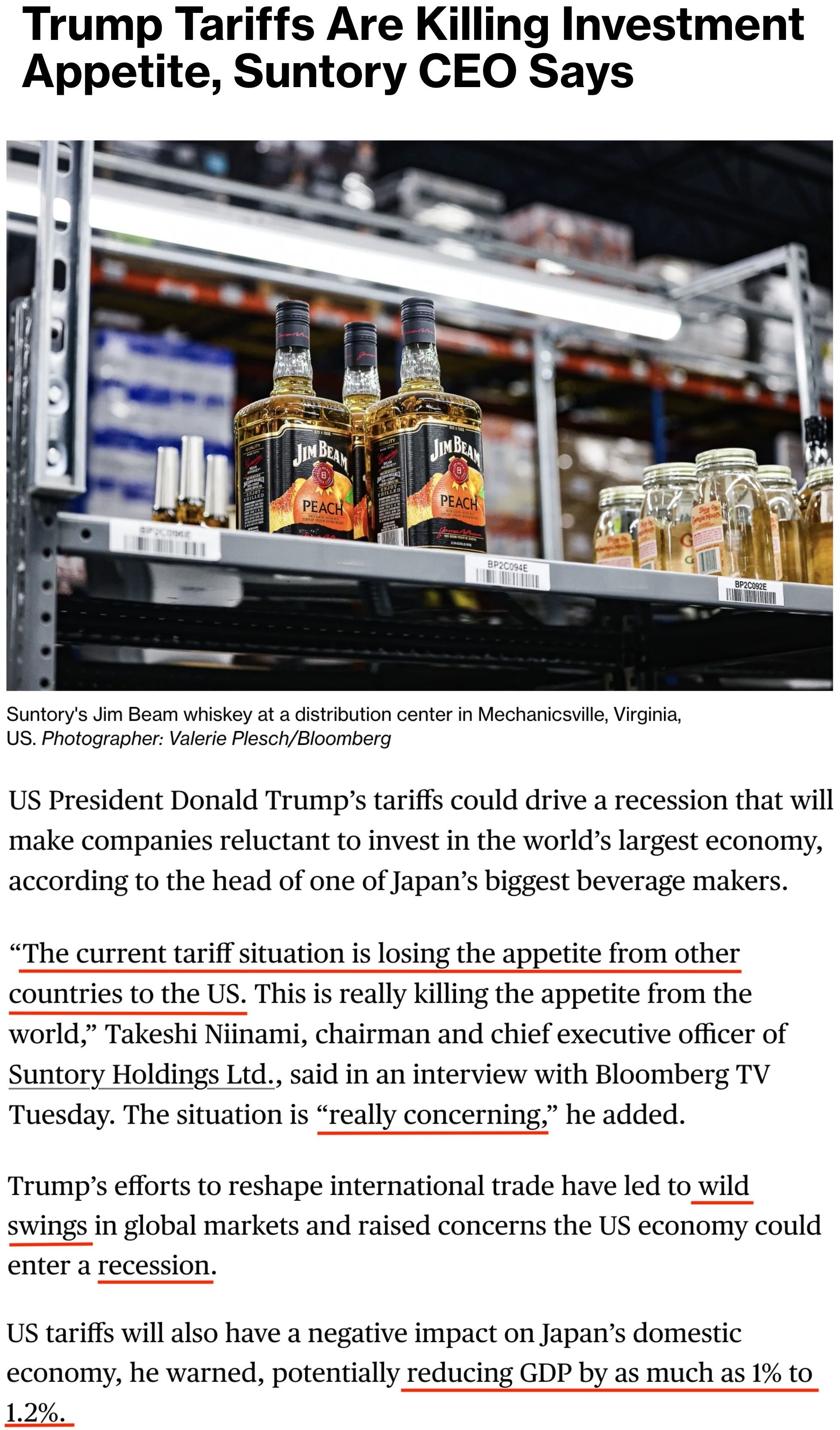 “目前的關(guān)稅形勢正讓其他國家失去對美國的(投資)興趣……情況非常令人擔(dān)憂。”