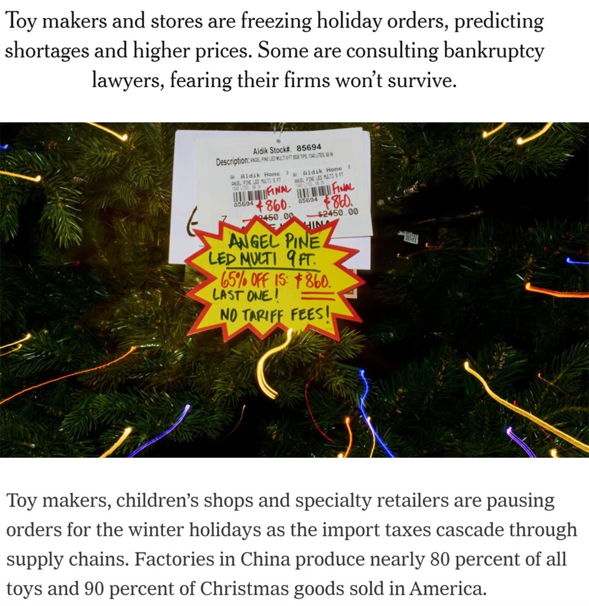 對(duì)于美國(guó)的節(jié)日產(chǎn)業(yè)來(lái)說,“中國(guó)制造”不可或缺,中國(guó)的工廠一直是美國(guó)進(jìn)口商的一站式商店。但受美國(guó)政府濫施關(guān)稅的影響,急劇攀升的高昂成本令美國(guó)大量相關(guān)產(chǎn)品的制造商及零售商紛紛叫停了今年節(jié)日季的訂單。