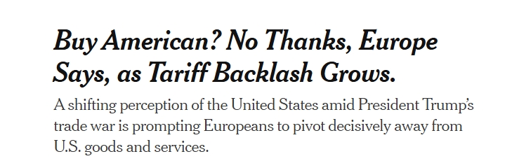 歐洲央行(European Central Bank,ECB)的最新評(píng)估顯示,在美國與歐洲貿(mào)易戰(zhàn)的緊張局勢下,許多歐洲消費(fèi)者開始回避美國產(chǎn)品和服務(wù),“不再購買美國貨”似乎是一次可能長期持續(xù)的決定性轉(zhuǎn)變。