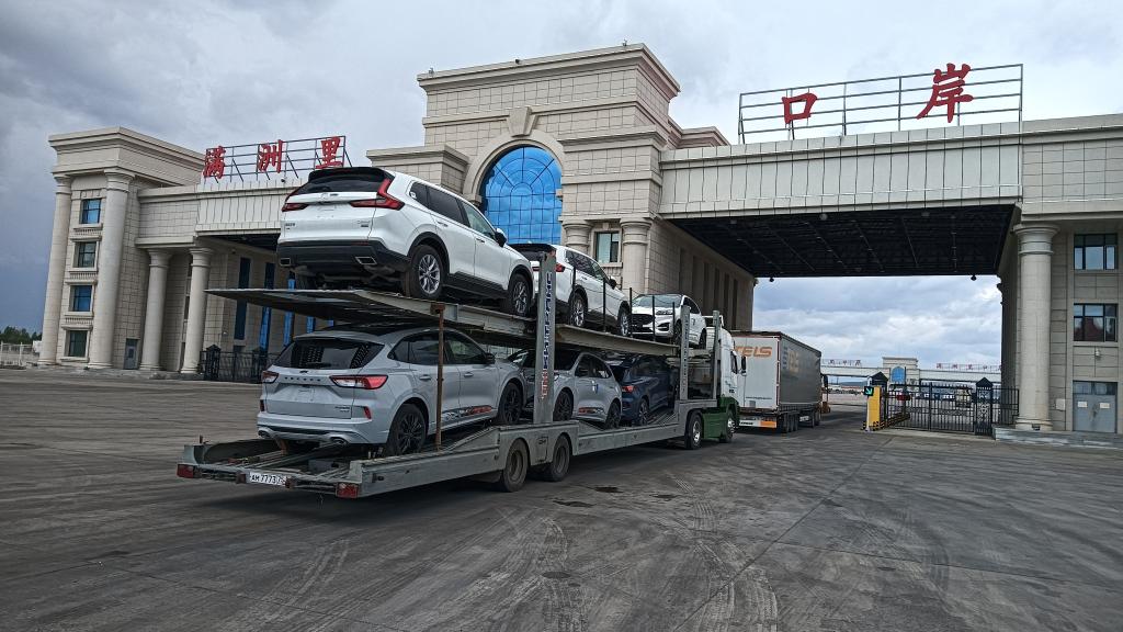 2024年7月,一批二手車通過滿洲里公路口岸出口。新華社發(fā)
