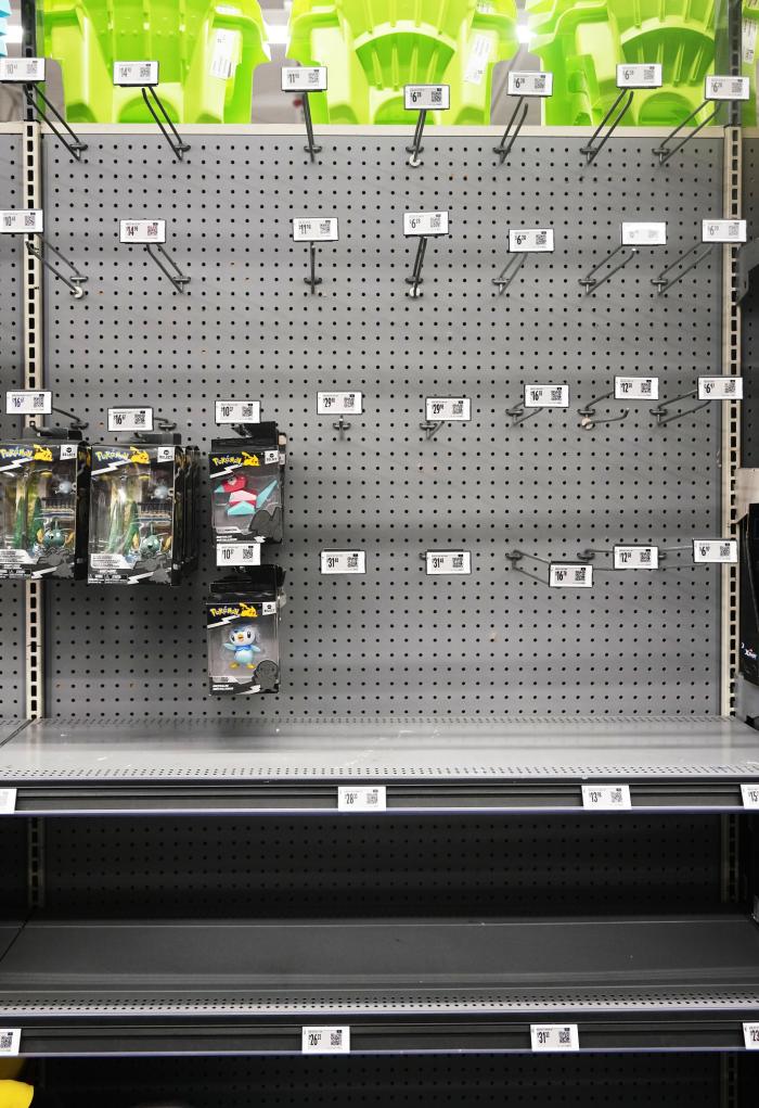 這是5月21日在美國加利福尼亞州舊金山灣區(qū)圣萊安德羅的一家沃爾瑪超市拍攝的空蕩的玩具貨架。新華社記者 吳曉凌 攝