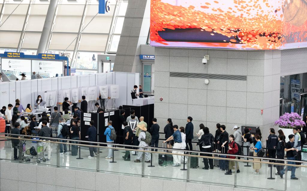 5月29日,選民在韓國仁川機(jī)場(chǎng)的投票站排隊(duì)等待投票。新華社發(fā)(全休相攝)
