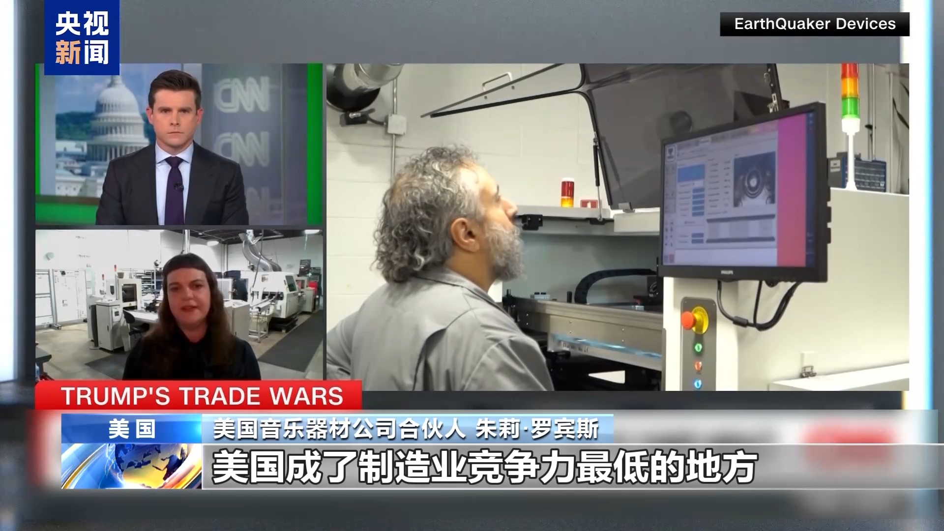美國音樂器材公司合伙人 朱莉·羅賓斯:海外的競爭對(duì)手無需面對(duì)這些困境,無需支付更多的關(guān)稅。相比之下,美國成了制造業(yè)競爭力最低的地方。