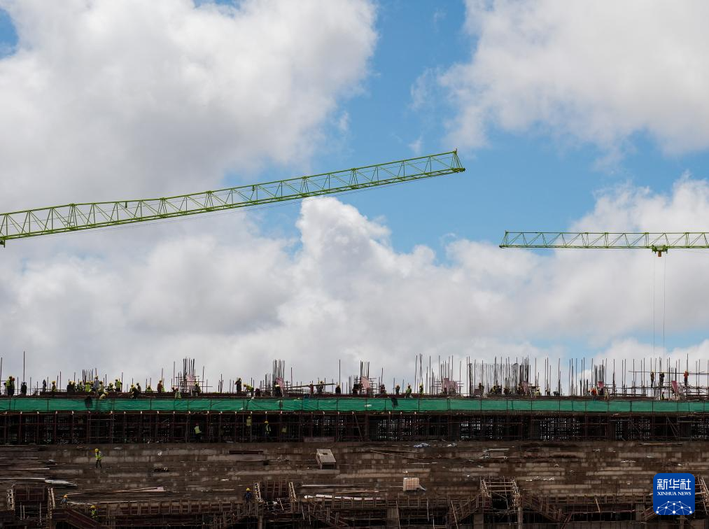 這是坦桑尼亞北部城市阿魯沙的一片繁忙工地:六座高聳的塔吊伸展著鋼鐵巨臂,在高空精準(zhǔn)吊運(yùn)建材;焊接聲、機(jī)械轟鳴聲與指令聲此起彼伏,交織成一首建設(shè)交響曲;上千名工人頭戴安全帽、身著反光背心,正全力拉滿施工“進(jìn)度條”……一座現(xiàn)代化體育場(chǎng)已初具雛形。